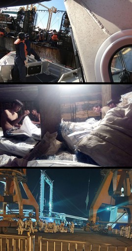 The team monitored the ships by satellite back to ports, and then to pin down who was cleaning, processing and freezing the catch for eventual export, we tracked Chinese fishing ships as they moved their catch to refrigeration ships and carried it to ports in China, where the trucks from one vessel were filmed by our investigators and followed to the processing plants. And this is where we discovered that forced labor is as much a problem on land as it is far at sea.